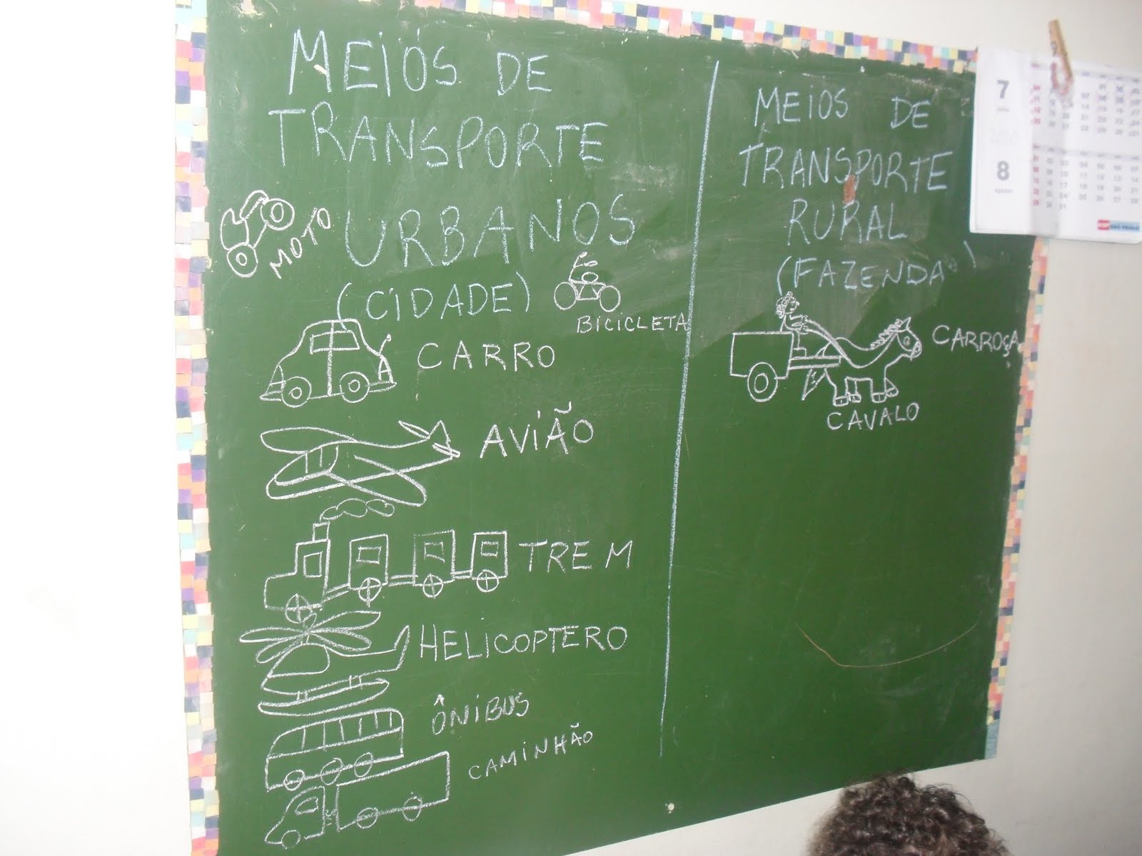A turma da manhã fez uma lista dos meios de transporte urbanos e rurais, depois confeccionaram uma carroça. O importante foi a coperação e interação de todos os alunos.